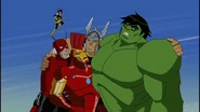 As Hulk is about to attack, the others stand up for him, Thor included, and Iron Man says that the Hulk is as much of a hero as the rest of them were. Then, Iron Man asks the other four to join him as a team to bring down the remaining villains. When they all agree, and Wasp comes up with a name for the group, the Avengers are officially formed.